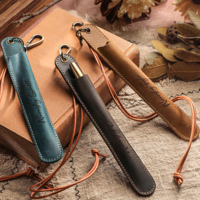 Free Laser Engraving Genuine Leather Pen Case Vintage Pen Holder Pouch with Waist Strap 20.2*2.8*2cm 45G for Drafting Carpentry