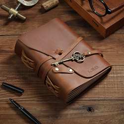 Aiguoniu Custom Reliëf Vintage Top Graan Lederen Dagboek 18X13X5Cm 500G Handgemaakte Magische Sleutel Dagboek Notitieboek Voor Schrijven